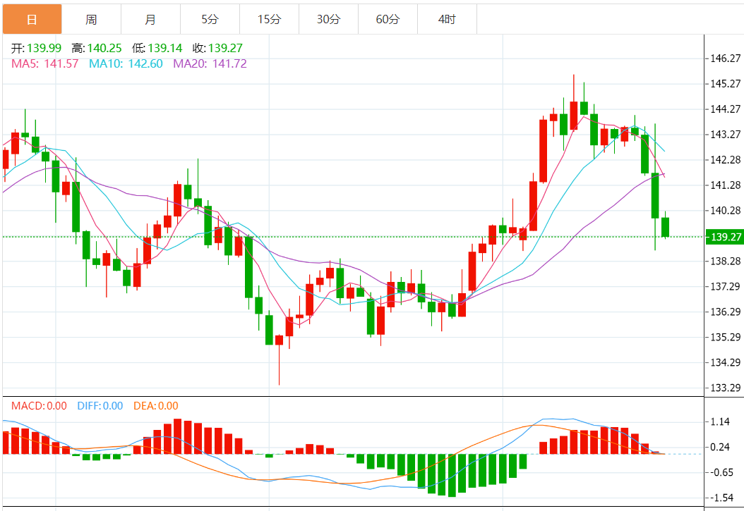 今日预期交易区间:在 141.15 和 142.85 之间