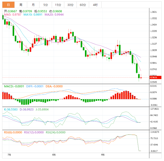 到目前为止,欧元兑美元在0.9620处上涨了0.13%,如果突破1.0050(9月20日的周最高价),目标将是1.0197(9月12日的月最高价),最终将向1.0262(100日移动均线)前进。