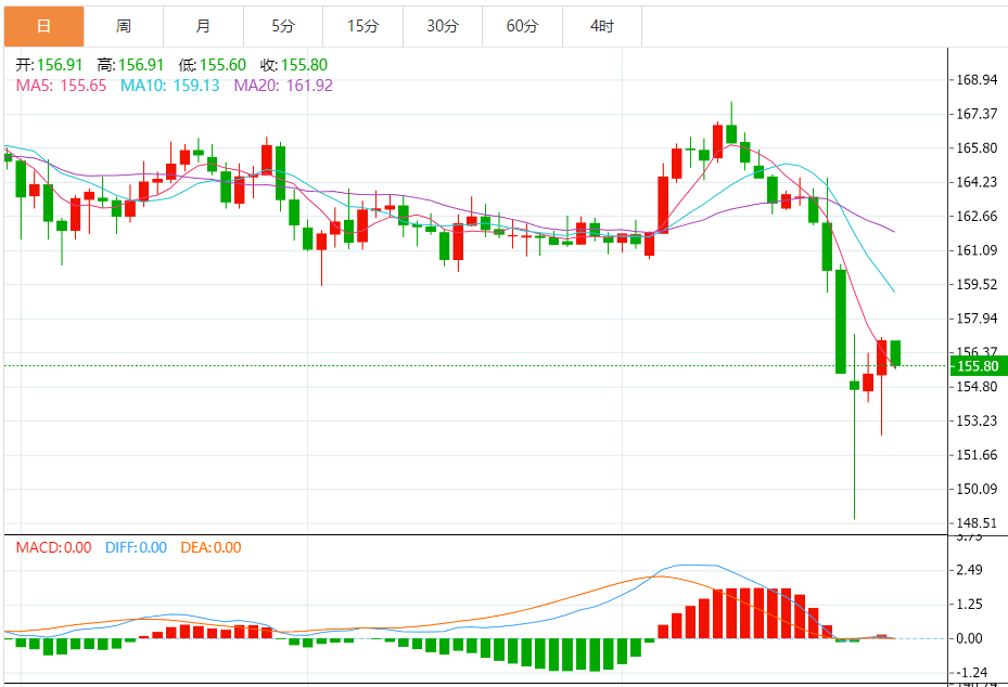 今日预期交易区间:在157.40至153.90之间