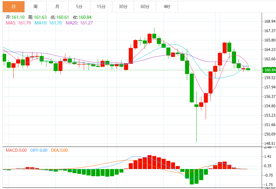 今日预期交易区间:在160.50 - 162.00之间