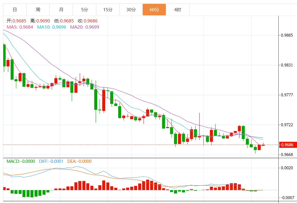 技术小时图显示,该资产跌破0.9678-0.9745的区间结构。此前该资产未能突破0.9974-1.0050的平衡区域后在平价遭遇强烈的抛售压力。