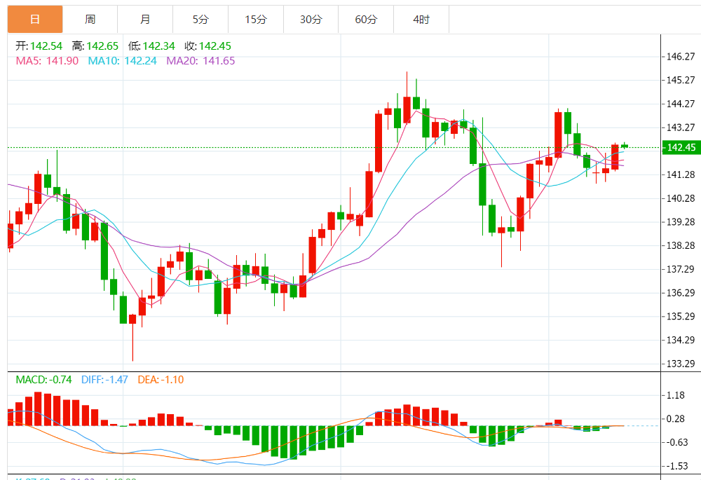 今日预期交易区间:在141.80 - 143.15之间
