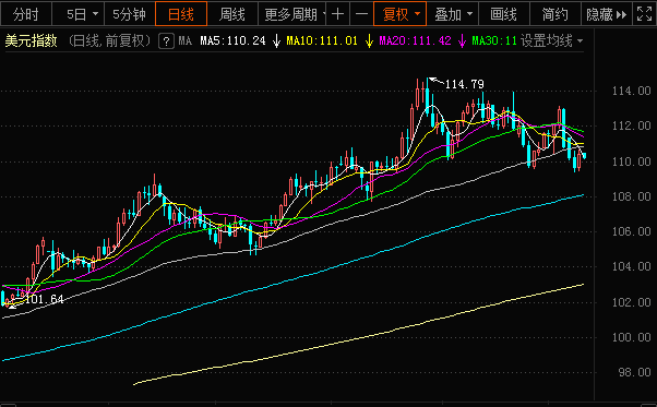 由于美国10月通胀数据公布之前市场越发谨慎,继周叁强势上扬至110.00后美元指数失去部分动能。