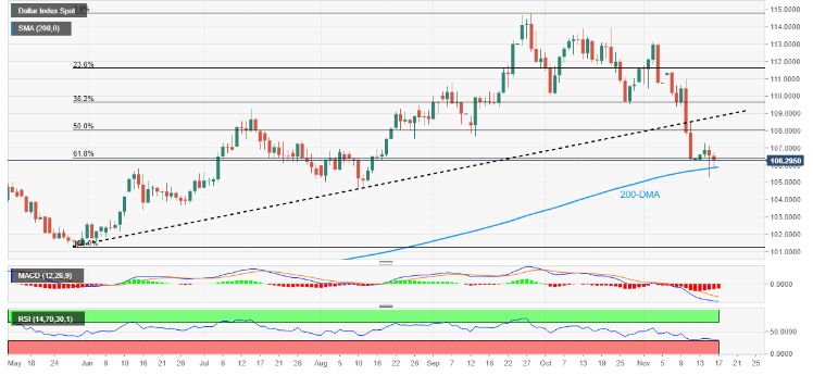 技术上,美元兑六种主要货币的美元指数整理于5 - 9月升势的61.8%斐波位106.45附近。相对强弱指标接近且美元数度未突破200日移动均线所构成的支撑(目前在105.90附近),美元指数可能会反弹指向107.00关口。
