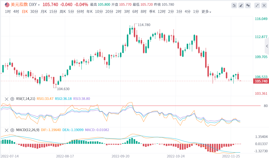 美元指数从9月28日触及的114.78的20年高点后持续回落,投资者期待美联储在明年初达到利率峰值,因预计通胀压力会减弱,对经济下滑的担忧也在增加。