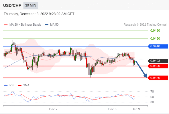 美元/瑞郎汇率今日分析:在 0.9440 之下,看跌,目标价位为 0.9390 ,然后为 0.9360 。