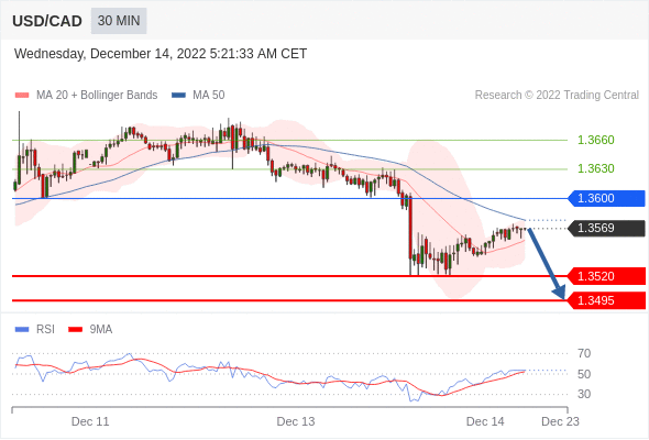 美元/加元汇率今日分析:在 1.3600 之下,看跌,目标价位为 1.3520,然后为 1.3495 。在 1.3600 上,看涨,目标价位定在 1.3630 ,然后为 1.3660。