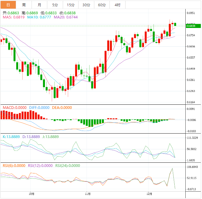 中国11月零售销售下滑至-5.9%,低于预期-3.6%和前值-0.5%;工业生产数据为2.2%,低于市场预期3.3%和前值5.0%。来自澳大利亚最大客户的令人失望的数据加入了近期美元的反弹,在央行发布重要声明之前,澳元/美元价格承压。