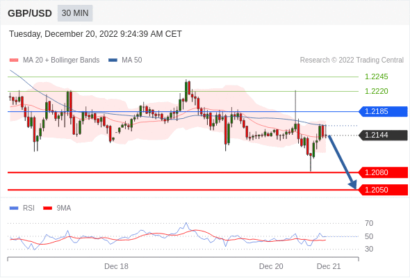 英镑/美元汇率今日分析:在 1.2185 之下,看跌,目标价位为 1.2080 ,然后为 1.2050 。 在 1.2185 上,看涨,目标价位定在 1.2220 ,然后为 1.2245。