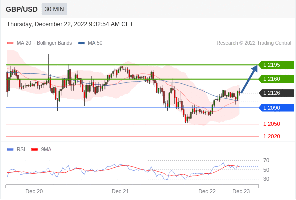 英镑/美元汇率今日分析:在 1.2090 之上,看涨,目标价位为 1.2160,然后为 1.2195 。在 1.2090 下,看空,目标价位定在 1.2050 ,然后为 1.2020。