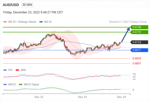 澳元/美元汇率今日分析:看涨,当 0.6677为支撑位。 向下跌破 0.6677 ,将带来继续下跌的趋势,目标位为 0.6633 然后为 0.6607 。