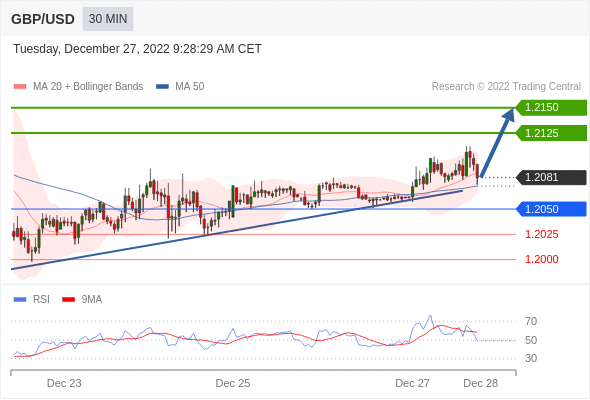 英镑/美元汇率今日分析:在 1.2050 之上,看涨,目标价位为 1.2125 ,然后为 1.2150 。在 1.2050 下,看空,目标价位定在 1.2025 ,然后为 1.2000。