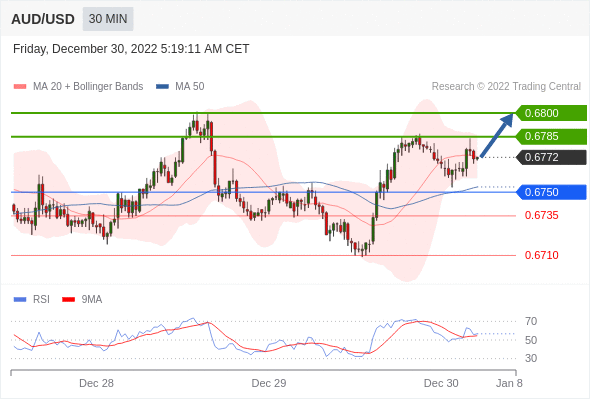 澳元/美元汇率今日分析:在 0.6750 之上,看涨,目标价位为 0.6785 ,然后为 0.6800 。在 0.6750 下,看空,目标价位定在 0.6735 ,然后为 0.6710。