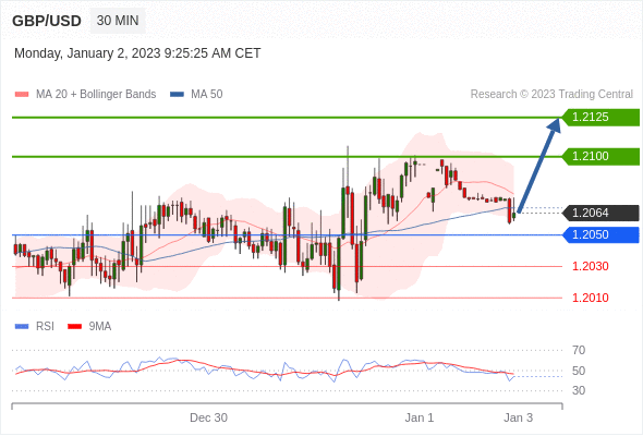 英镑/美元汇率今日分析:在 1.2050 之上,看涨,目标价位为 1.2100 ,然后为 1.2125 。在 1.2050 下,看空,目标价位定在 1.2030 ,然后为 1.2010。