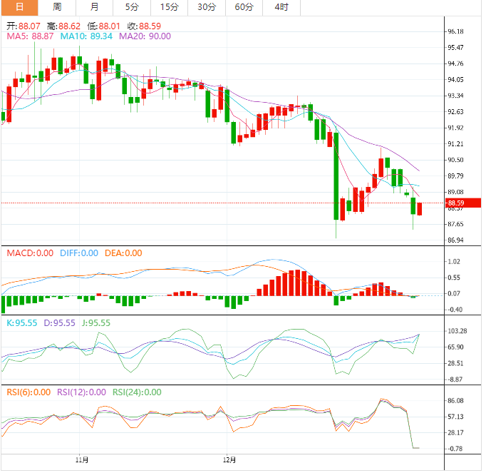 澳元兑日元日线图显示,该交叉货币处于中性或向下偏向的状态,不过应该说,在87.00关口附近出现了双底。相对强弱指数(RSI)仍然处于看跌区域,但其斜率趋于平缓,而变化率(RoC)显示抛售压力正在减弱。