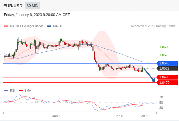 欧元/美元汇率今日分析:在 1.0540 之下,看跌,目标价位为 1.0490 ,然后为 1.0470 。在 1.0540 上,看涨,目标价位定在 1.0570 ,然后为 1.0600。