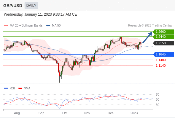 英镑/美元汇率今日分析:在 1.2185 之下,看跌,目标价位为 1.2125 ,然后为 1.2105 。在 1.2185 上,看涨,目标价位定在 1.2210 ,然后为 1.2240。