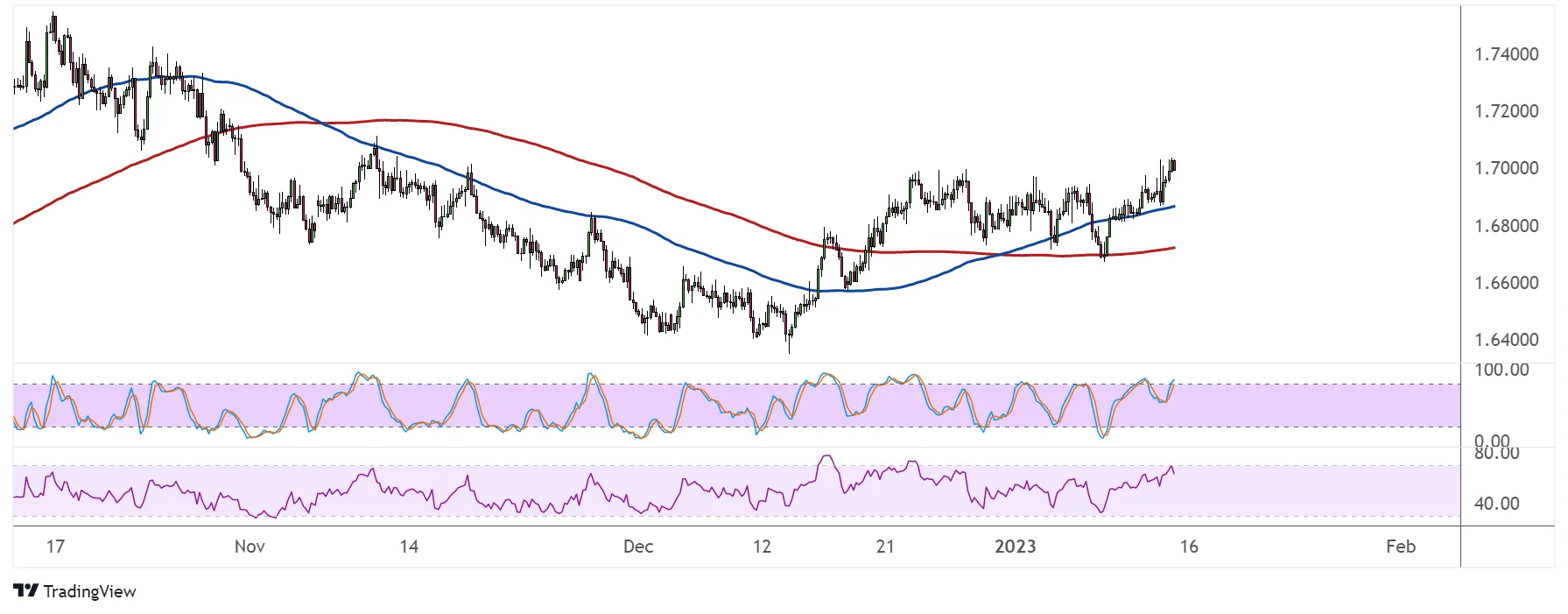 随机指标在达到超买区域之前有一些走高的空间,以反映买家的疲惫。转跌将表明抛售压力回归,可能会使欧元兑纽元回落至附近的支撑位。