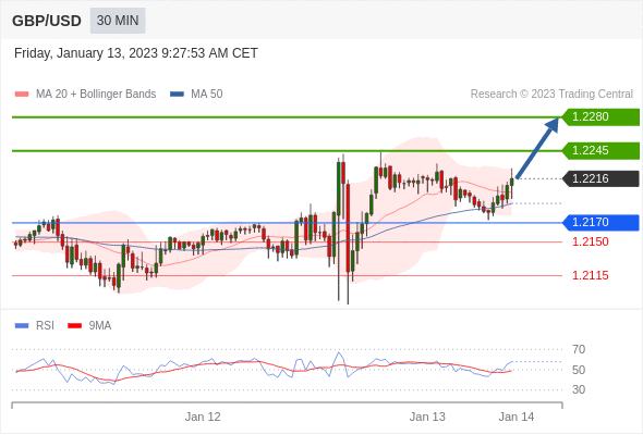 英镑/美元汇率今日分析:在 1.2170 之上,看涨,目标价位为 1.2245 ,然后为 1.2280 。在 1.2170 下,看空,目标价位定在 1.2150 ,然后为 1.2115。