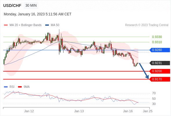 美元/瑞郎汇率今日分析:在 0.9280 之下,看跌,目标价位为 0.9200 ,然后为 0.9170 。在 0.9280 上,看涨,目标价位定在 0.9310 ,然后为 0.9330。