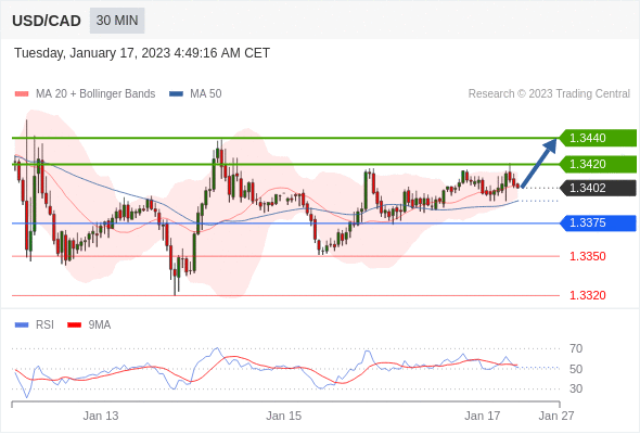 周二(1月17日)盘中, 美元/加元暂报1.3368,跌0.0024,跌幅0.18%。
