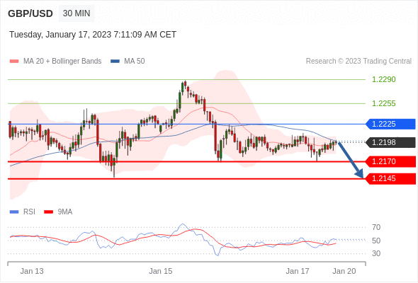 英镑/美元汇率今日分析:在 1.2225 之下,看跌,目标价位为 1.2170 ,然后为 1.2145 。在 1.2225 上,看涨,目标价位定在 1.2255 ,然后为 1.2290。