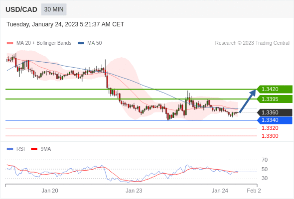 美元/加元汇率今日分析:在 1.3340 之上,看涨,目标价位为 1.3395 ,然后为 1.3420 。 在 1.3340 下,看空,目标价位定在 1.3320 ,然后为 1.3300。