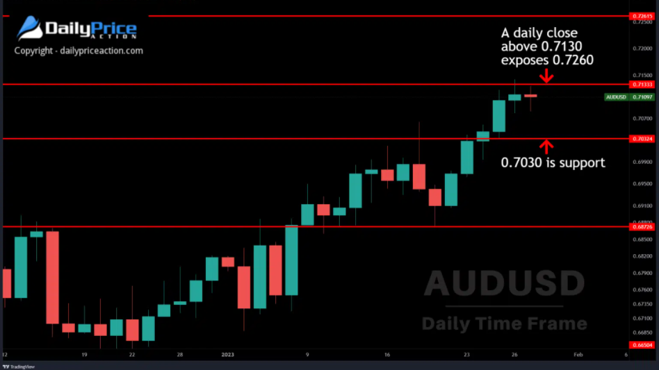 0.7130区域是本周澳元兑美元的阻力位。这也是多头在每日收盘时必须清除的水平,以暴露0.7260。