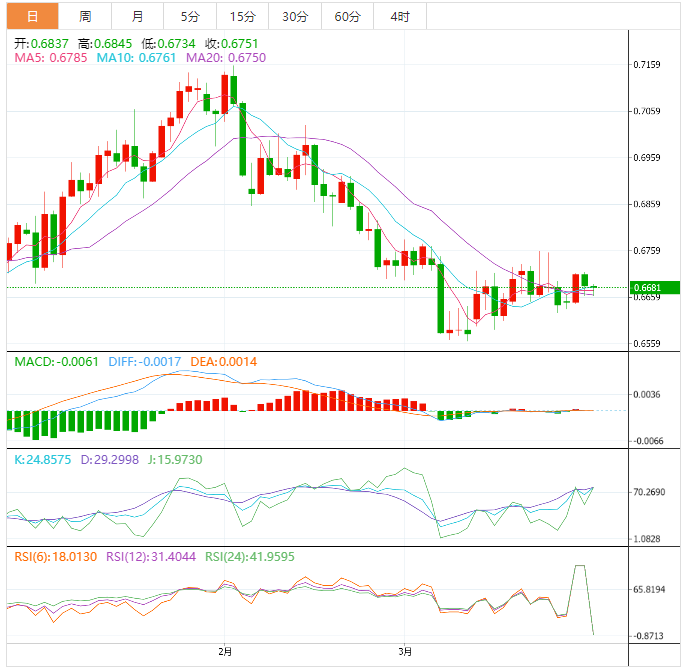 如果澳元/美元下行到3月29日的低点0.6661,将打压澳元/美元接近3月24日的低点0.6625,然后是3月15日低点0.6564。