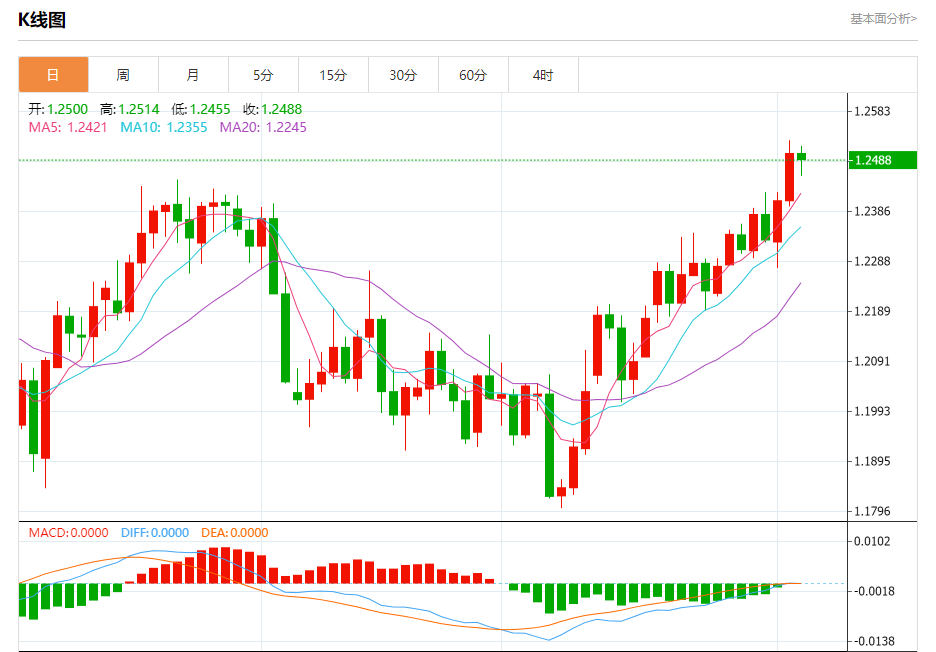 周三盘中,英镑/美元报1.2489,跌幅0.10%。