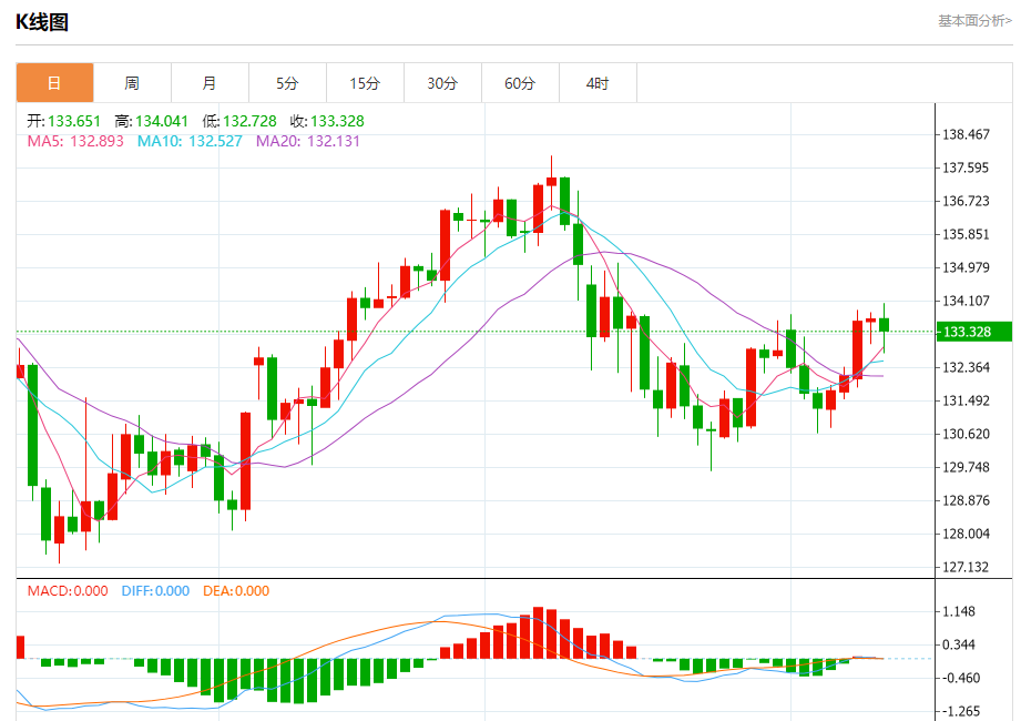 周三盘中,美元/日元报133.330,跌幅0.24%。