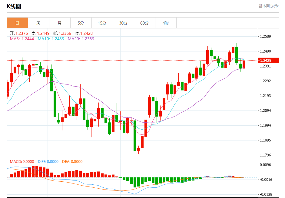 周二盘中,英镑/美元报1.2430,涨幅0.43%。