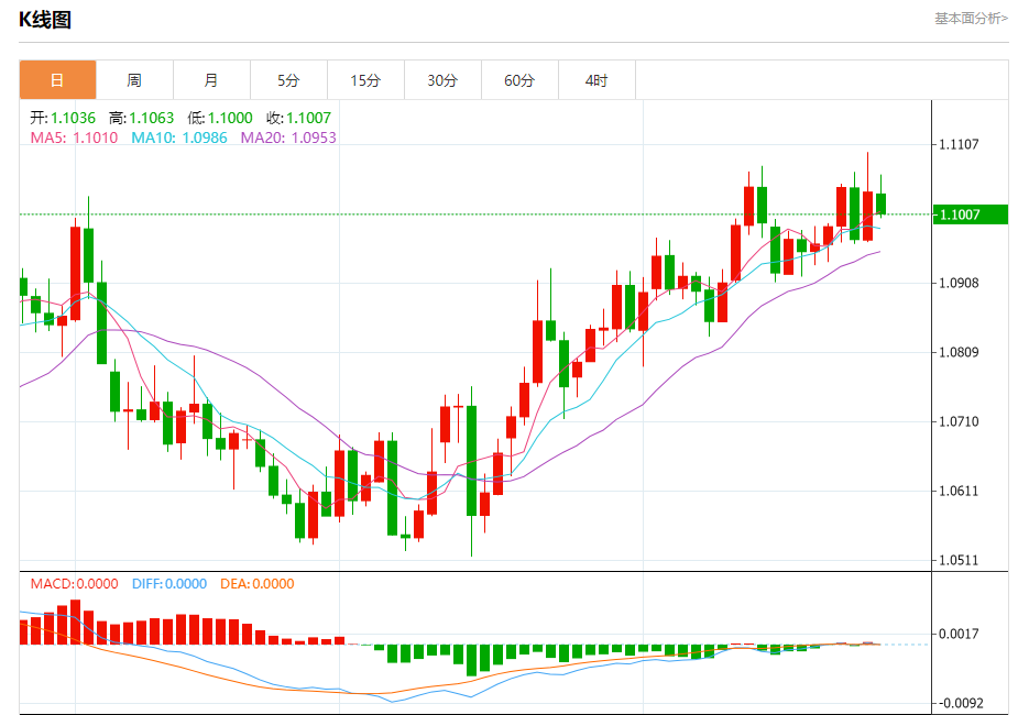周四盘中,欧元/美元报1.1010,跌幅0.27%。