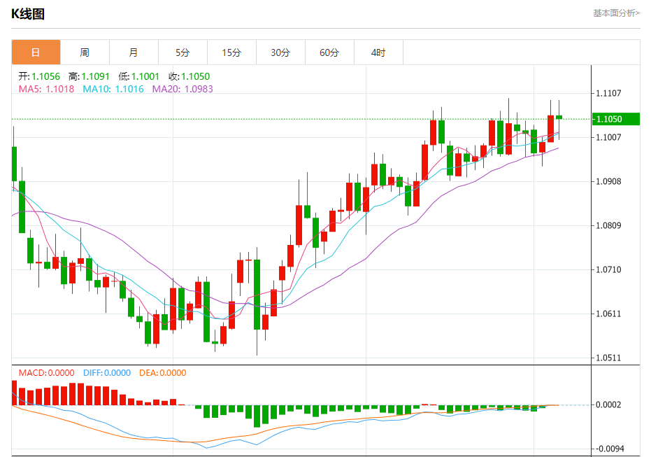 周四盘中,欧元/美元报1.1051,跌幅0.06%。