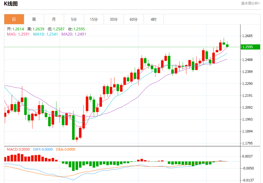 周二盘中,英镑/美元报1.2596,跌幅0.15%。