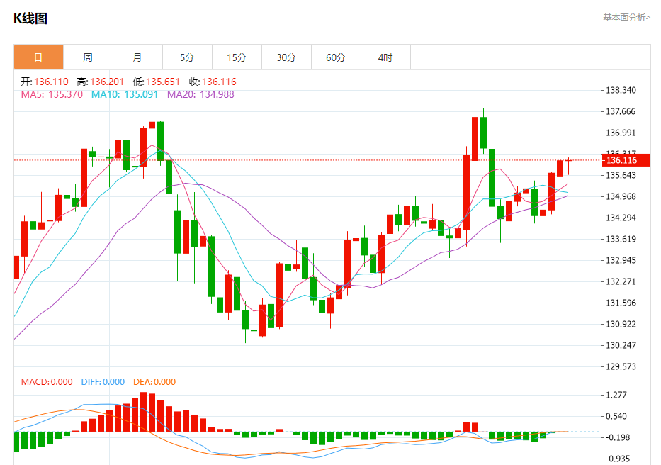 周二盘中,美元/日元报136.116,涨幅0.01%。