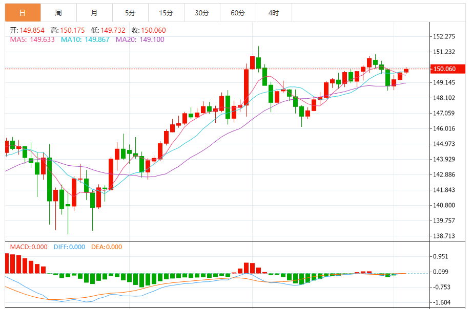 今天的预期交易范围:在149.30和150.50之间