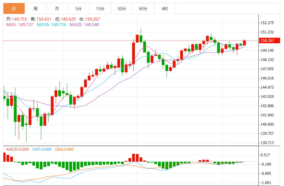 技术上,欧元兑日元记录了一些额外的收益,利用其在MA55上方的倾斜以及自上午以来的随机正动量信号,注意到向150.40反弹。