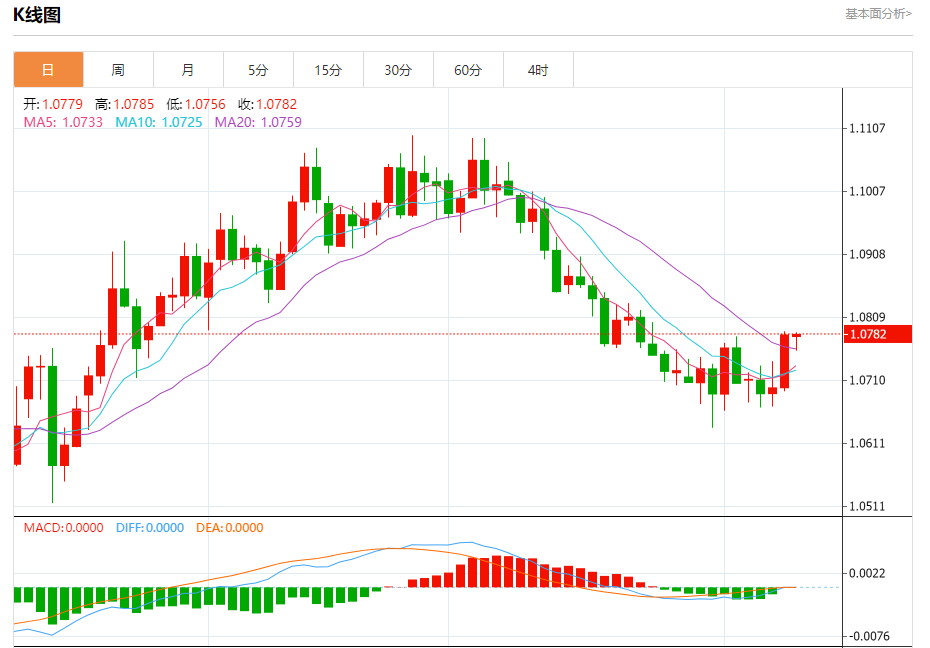 周五盘中,欧元/美元报1.0782,涨幅0.00%。