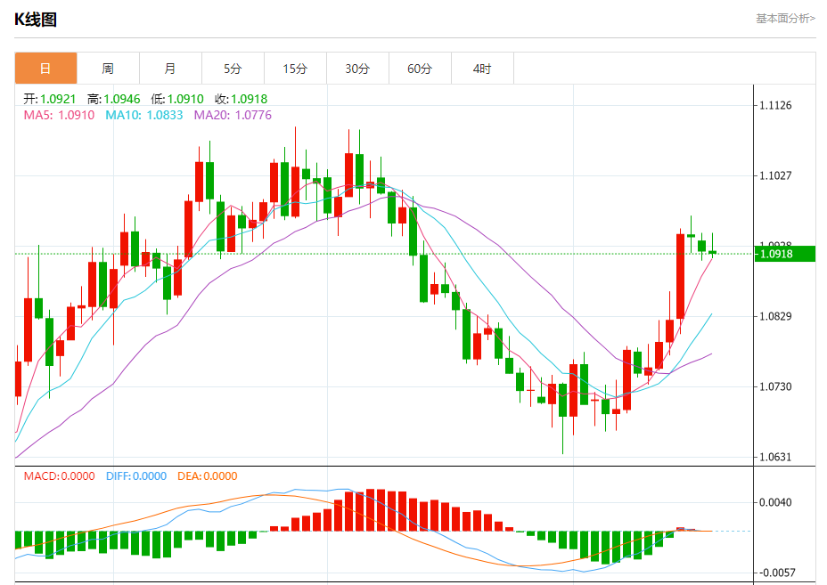 ÖܶþÅÌÖУ¬Å·Ôª/ÃÀÔª±¨1.0918£¬µø·ù0.03%¡£
