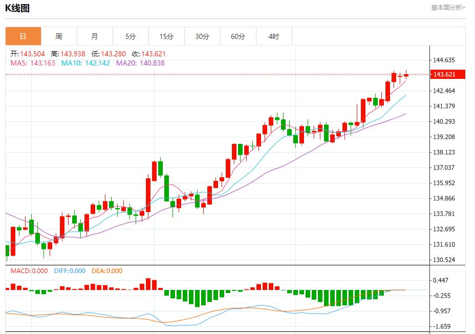 ÖܶþÅÌÖУ¬ÃÀÔª/ÈÕÔª±¨143.635£¬ÕÇ·ù0.08%¡£
