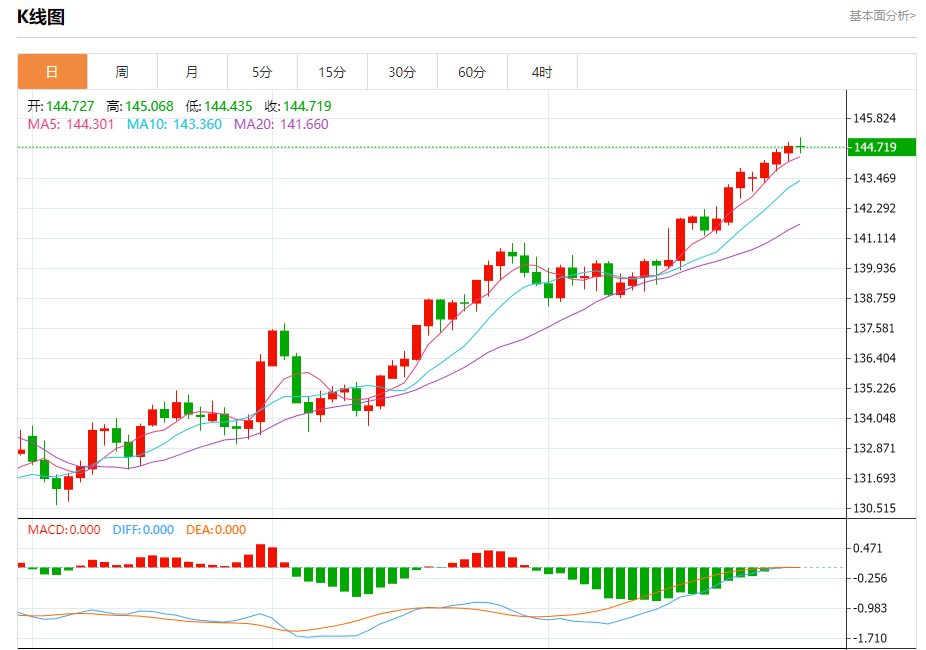 ÖÜÎåÅÌÖУ¬ÃÀÔª/ÈÕÔª±¨144.747£¬ÕÇ·ù0.00%¡£
