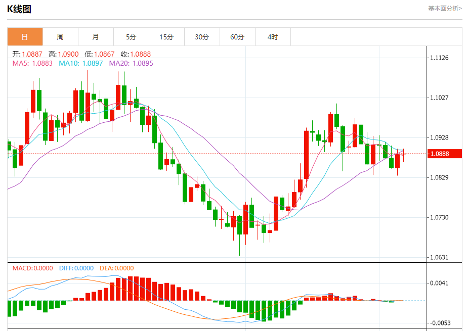 周五盘中,欧元/美元报1.0889,涨幅0.00%。