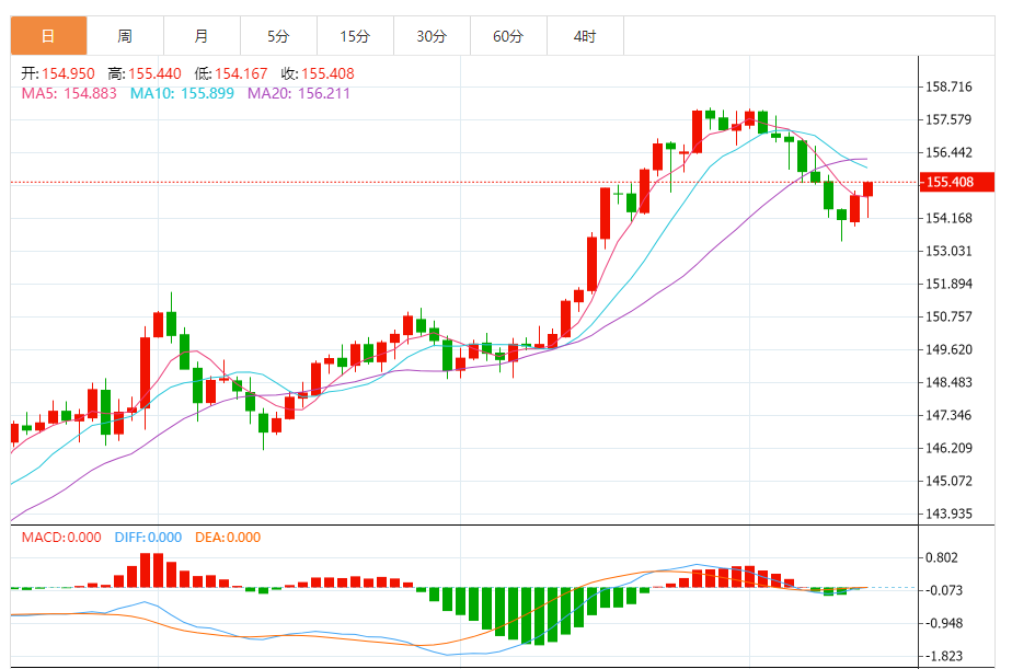 今天的预期交易范围:在155.45和153.80之间