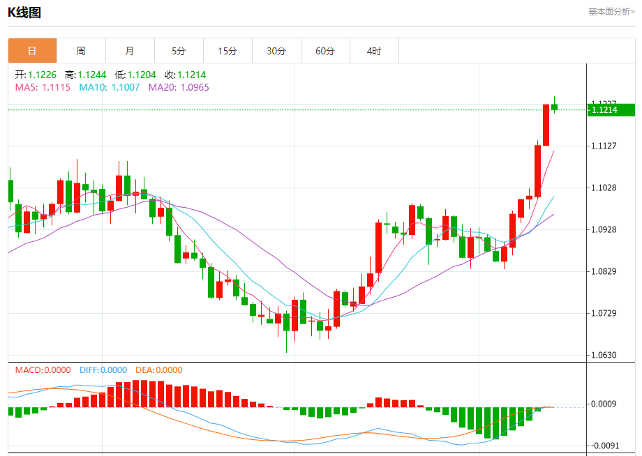 周五盘中,欧元/美元报1.1216,跌幅0.10%。