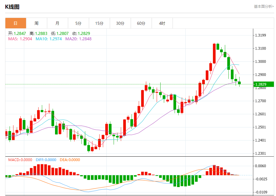 周一盘中,英镑/美元报1.2830,跌幅0.18%。