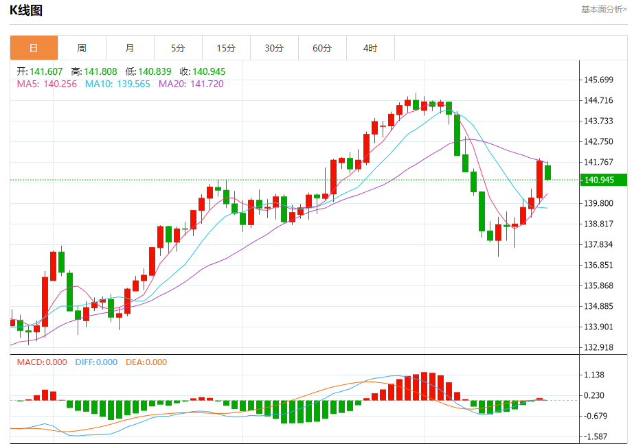 周一盘中,美元/日元报140.958,跌幅0.62%。