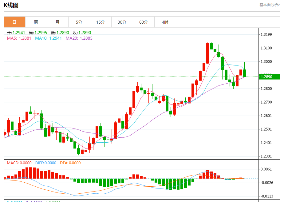 周四盘中,英镑/美元报1.2893,跌幅0.38%。
