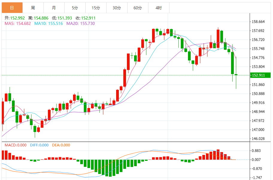 今天的预期交易范围:在153.85和152.25之间