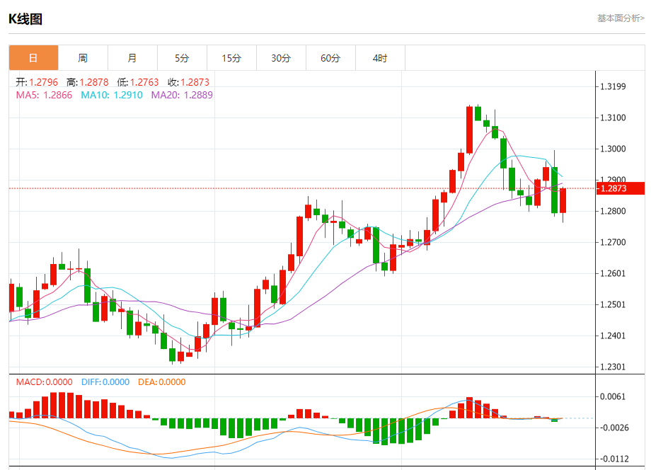 周五盘中,英镑/美元报1.2877,涨幅0.63%。